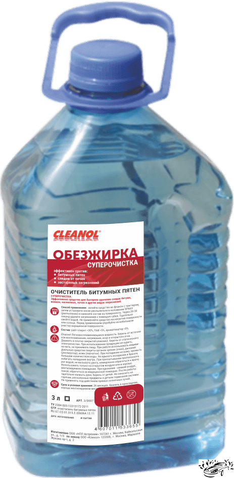 Очиститель битумных пятен "Обезжирка" 3 л, Cleanol