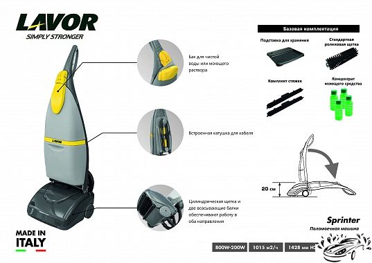 Электрическая «поломойка» LAVOR ProSprinter позволяет быстро и эффективно справиться с уборкой без особых физических усилий, а после компактно убирается на хранение.