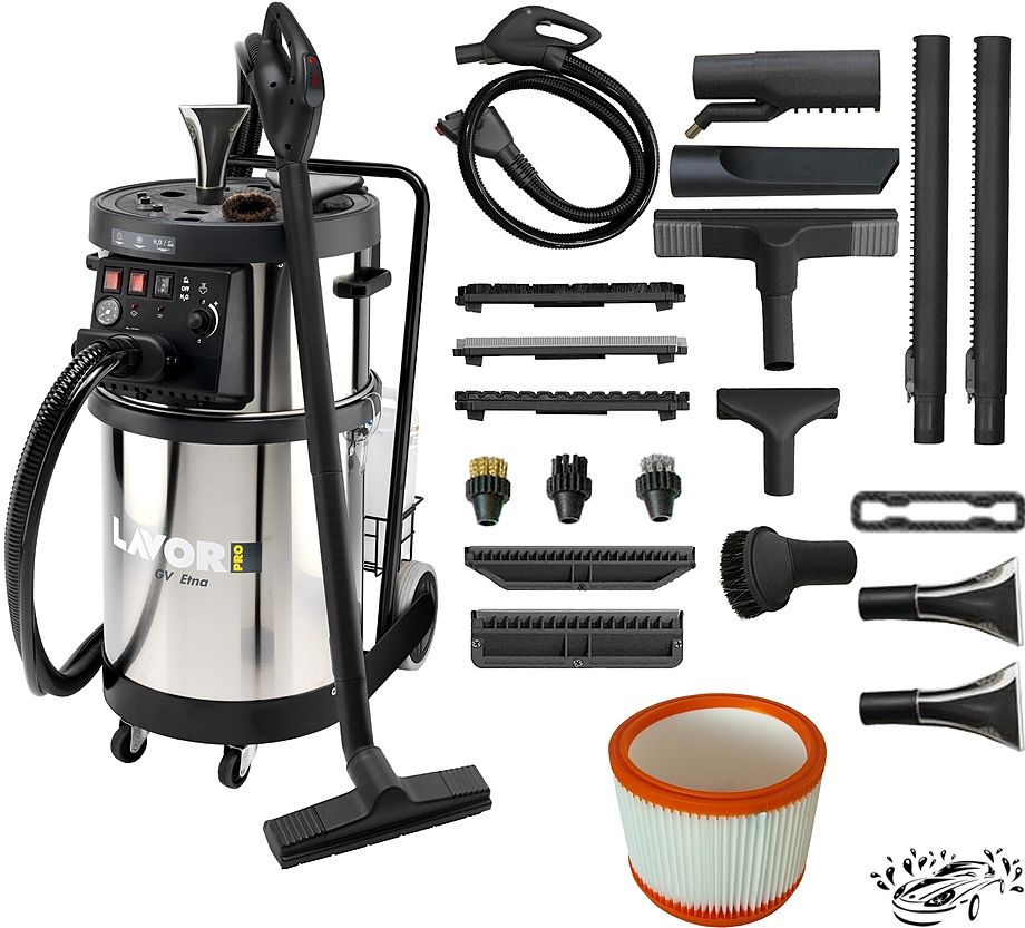 Парогенератор Lavor (Лавор) Pro GV ETNA 4.1 FR предназначен для быстрой и эффективной чистки различных поверхностей при помощи пара и моющего средства. Парогенератор для клининга ETNA 4.1 FR имеет 2 бака объемом 5 л каждый для чистой воды и для моющего раствора, который может добавляться непосредственно в пар.