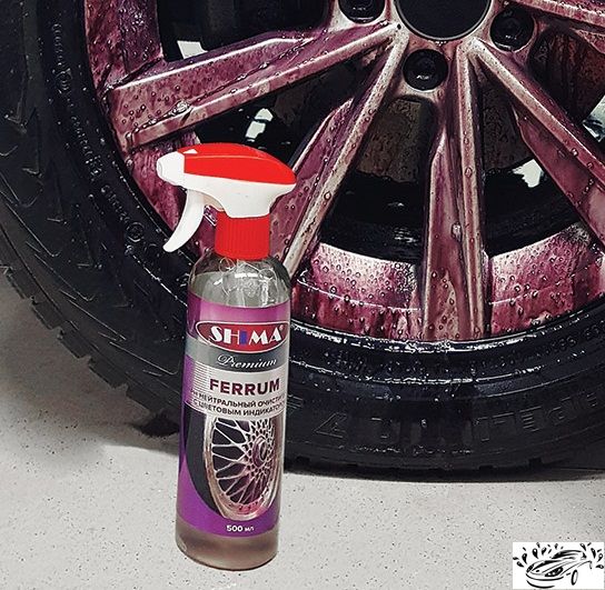 1. Нанести состав на колесные диски, через 3-4 минуты смыть под давлением. При взаимодействии с грязью средство приобретает темно-фиолетовый цвет.